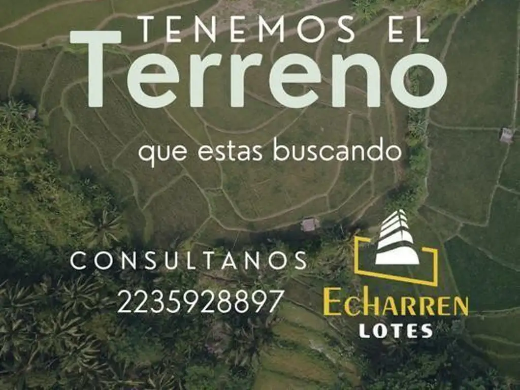 Echarren Lotes es un área especifica de Echarren Estudio Inmobiliario dedicada exclusivamente a Terrenos y Lotes en todo el partido de General Pueyrredon. Contamos un listado actualizado exclusivo con mas de mil terrenos y lotes para la compra. No dejes de consultarnos por el listado para saber los nuevos ingresos. Contamos con las zonas de chapadmalal, sierra de los padres, Punta mogotes, Constitución, Camet, Marquesado Batan y muchas mas. Tu consulta no molesta.