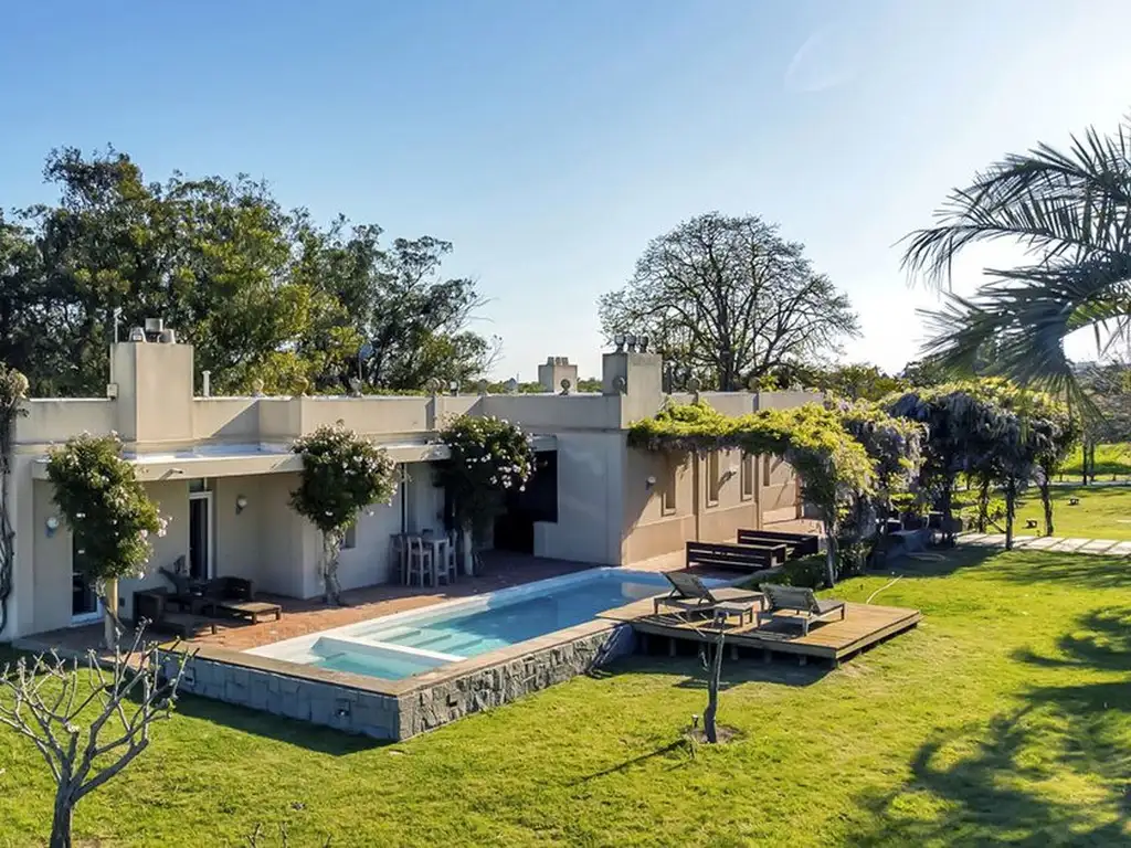 Excepcional chacra con casa en alquiler temporario en el exclusivo balneario de Manantiales, Punta del Este, desarrollada sobre una superficie de 11 has con 682 m2. Posee huerta orgánica, pileta, jacuzzi, un pintoresco fogón y 2 toilettes. Tiene living con hogar a leña y aire acondicionado, comedor con aire acondicionado, cocina definida, parrillero techado con vista al lago. Posee 7 dormitorios, todos en suite, calefaccionados con hogar a leña y aire acondicionado, dos de ellos con espectacular vista al lago. Cuenta con gimnasio, independiente de la casa principal. Equipamiento completo y amoblamiento de alta calidad; se incluye servicio de TV por cable, internet Wifi y ropa blanca. Un lugar realmente único, donde podrás disfrutar tu estadía con total privacidad, seguridad y absoluta paz.