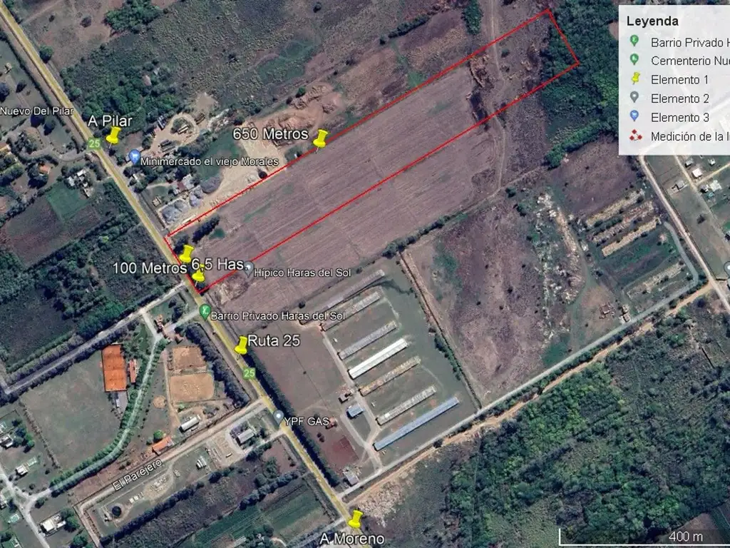 6 Has 44 áreas. Sobre ruta 25 Pilar frente Haras del Sol.100 metros sobre ruta x 650 metros de fondo , a 6 km de Pilar centro y 6 km de cruce de rutas 25 y 24 .Energía trifásica .Excelente fracción rural y comercial para muchisimos destinos . · Día 3 Noviembre 2023.