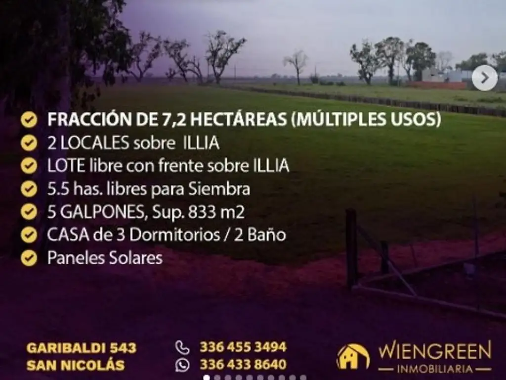 Vendo Fraccion de 7,2 hectareas sobre Av. Illia