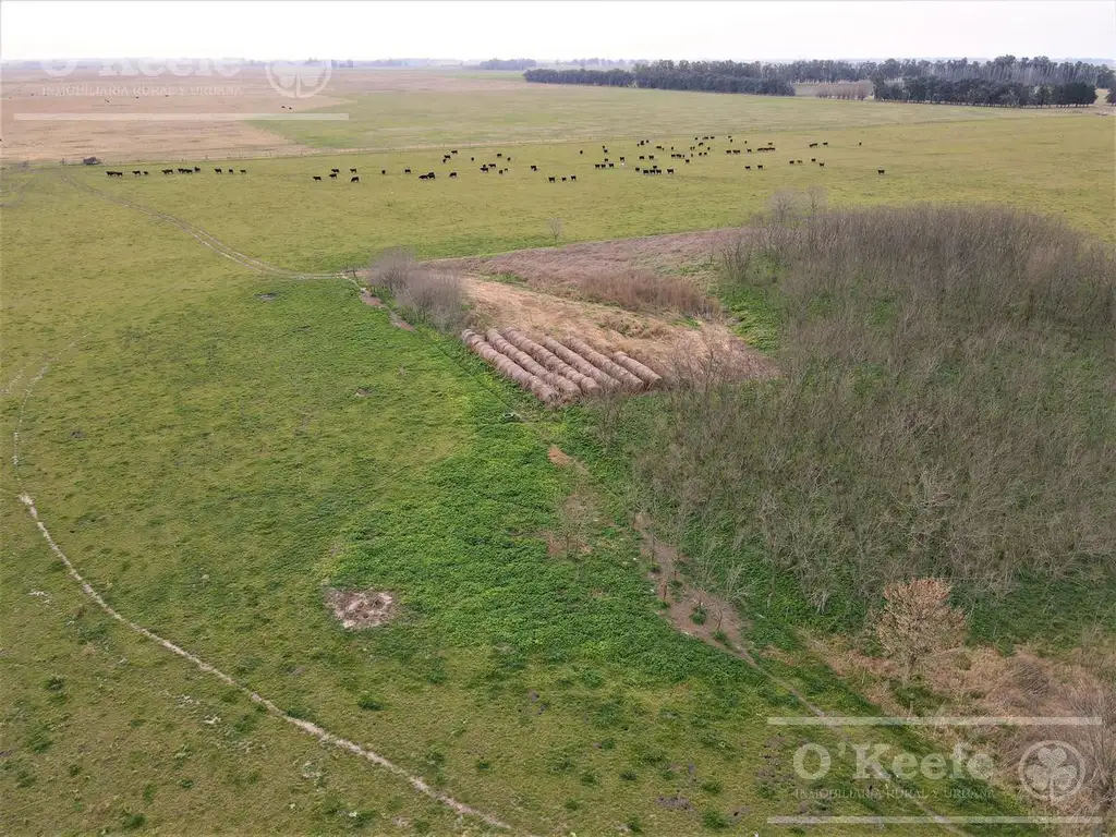 Características del suelo: Campo mixto con un 30% de superficie sembrable, en la cual se encuentra Suelo Clase III Serie Brandsen con indice de productividad 61%. El resto del campo es ganadero de cria y recria, con una receptividad de 0.7 E/V