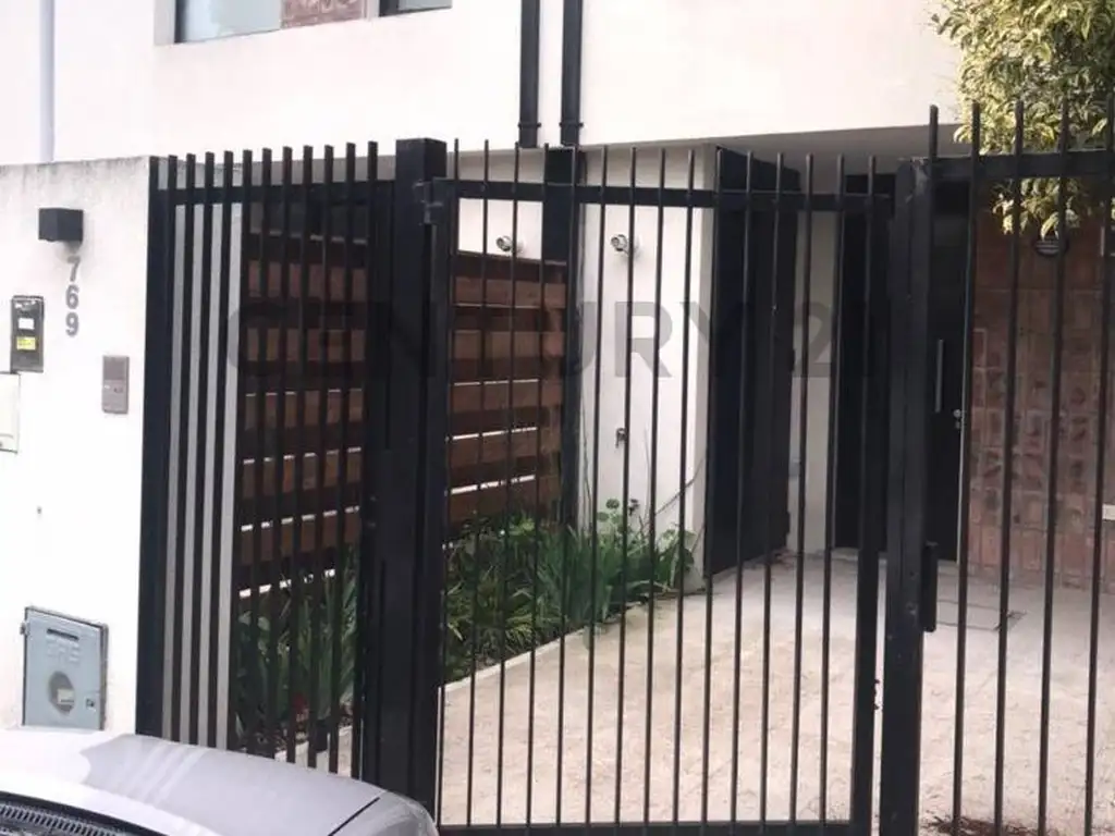 Duplex desarrollado en dos plantas muy luminoso, en planta baja se encuentra la cocina con muebles bajo mesada, living comedor y salida al jardín con parrilla, y toilette; la planta alta cuenta con dormitorio principal con placard y salida al balcón, segundo dormitorio con placard, baño completo. Aberturas de aluminio. Jardín con parrilla, garaje descubierto. Calefacción por radiadores.