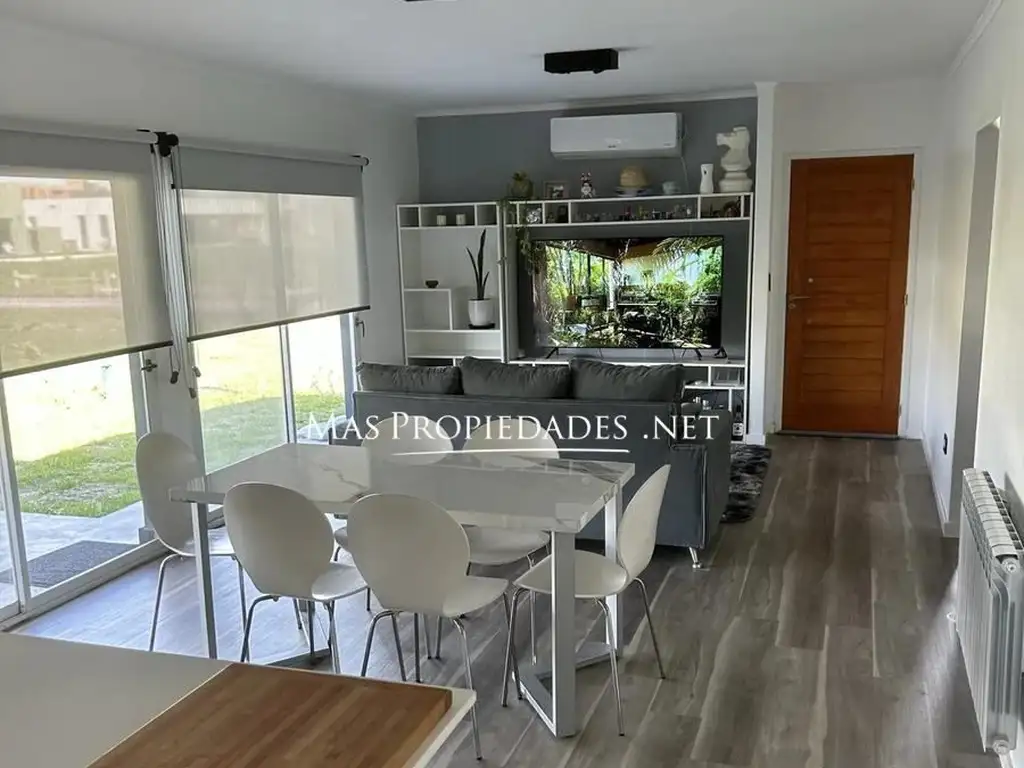 Esta hermosa casa en alquiler en Fincas de San Vicente Sporting Club se encuentra completamente amoblada y lista para disfrutar. Con una superficie total de 180 m2, de los cuales 160 m2 son cubiertos, la propiedad cuenta con tres acogedores dormitorios, dos de ellos con acceso a baños interiores, destacando el principal que incluye un baño en suite, aire acondicionado frío/calor y TV. La cocina y el living comedor están integrados, separados por una elegante isla que proporciona un espacio ideal para comidas informales, equipada con electrodomésticos eléctricos y vajilla completa. El ambiente general se complementa con aire acondicionado, una TV de 65", y acceso a internet con plataformas como Flow, Netflix y Amazon.