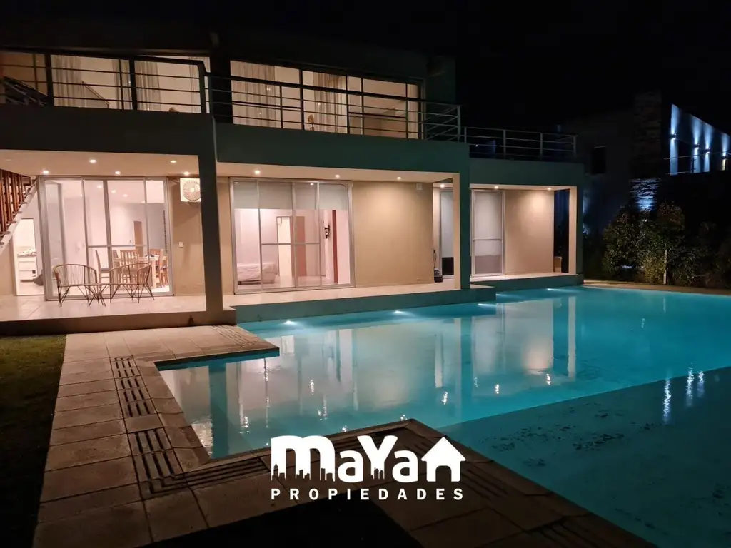Al exterior un hermoso jardin completamente parquizado, pileta de 11x9 mts y galería semi cubierta. Ademas en la planta alta posee un living aterrazado y espacio de fogonero en la terraza.