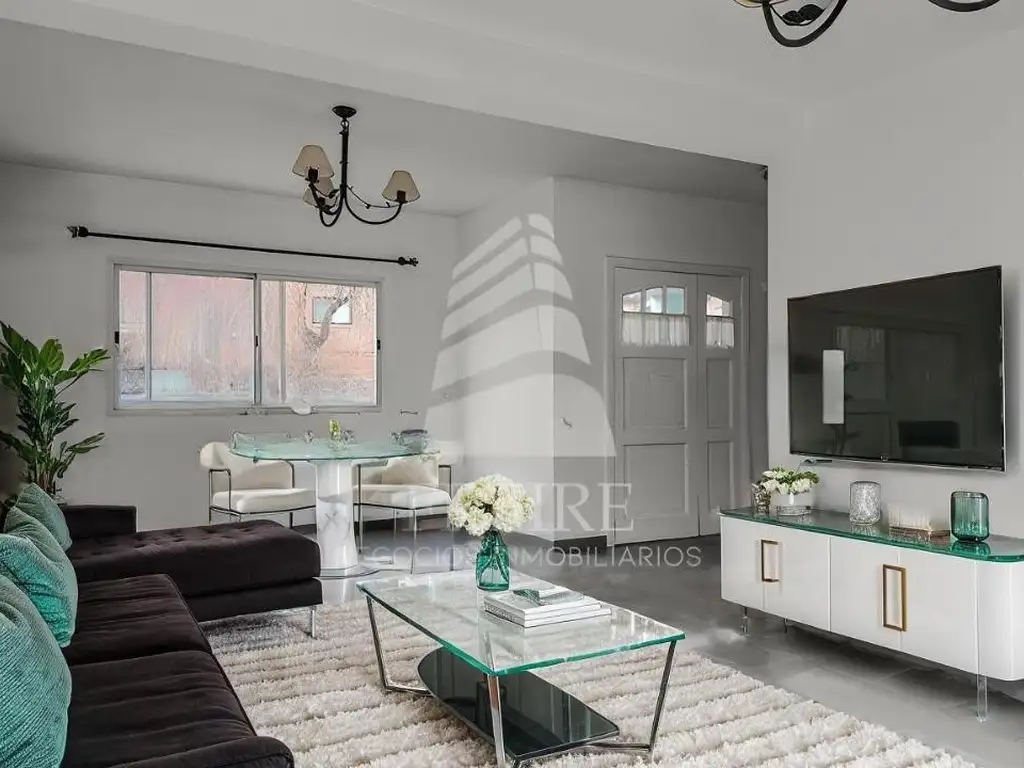 Living comedor con hogar, toilette de recepción, cocina integrada estilo americana. Lavadero. espacio para 3 autos.