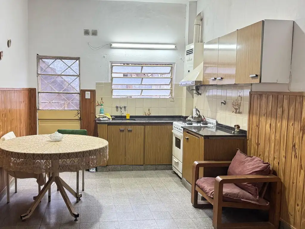 Casa al frente, con ingreso a través de un porch que conduce al interior de la propiedad. Al entrar, nos recibe un amplio living-comedor, con espacio más que suficiente para un comedor diario. Desde allí, se accede a una galería que conecta con el patio, donde también se encuentra un lavadero independiente.