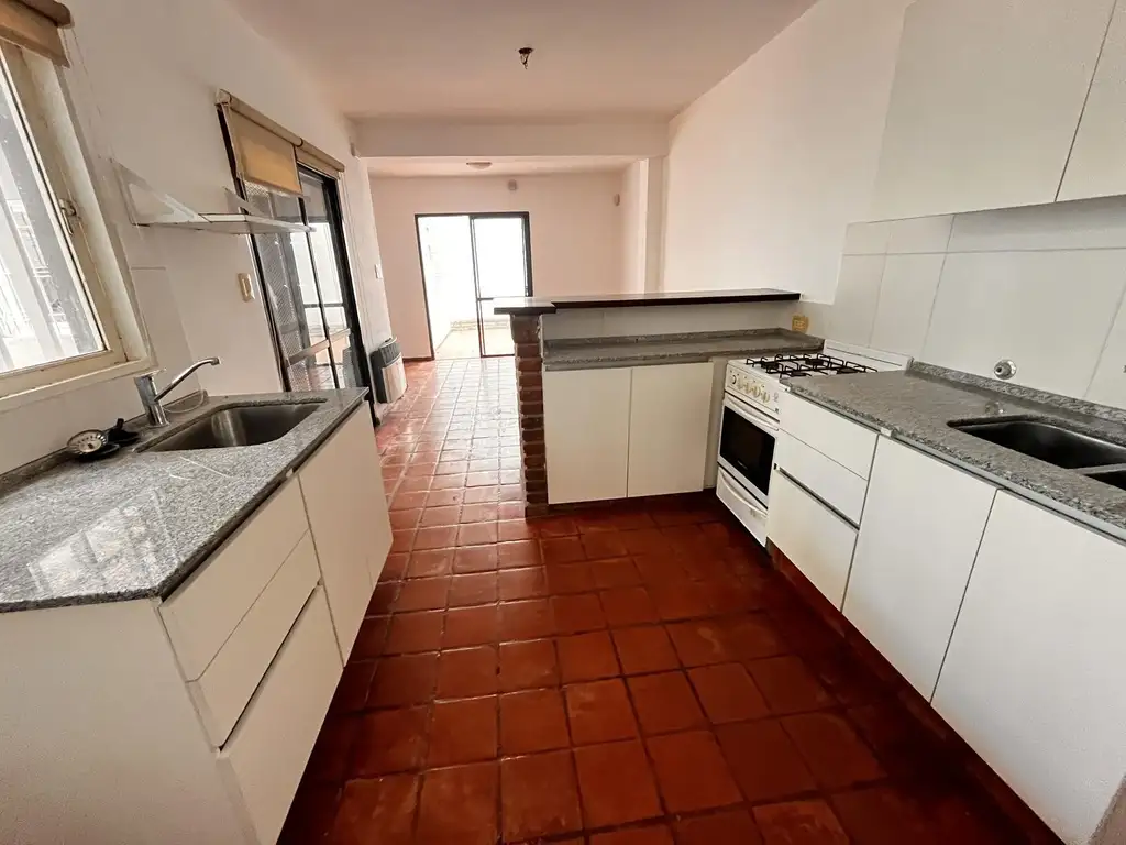 Al entrar, cuenta con una amplia cocina comedor con mucha mesada, alacenas, barra desayunadora, super cómoda y espaciosa. Con sector lavedero.