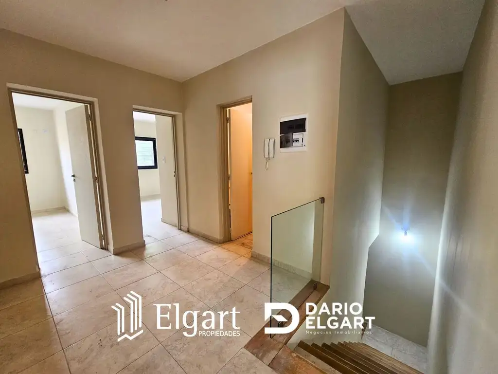 Planta alta: living comedor amplio con desborde a patio con asador, cocina comedor, 3 dormitorios (2 con placares con inteiores, el principal con baño en suite y vestidor, baño completo.