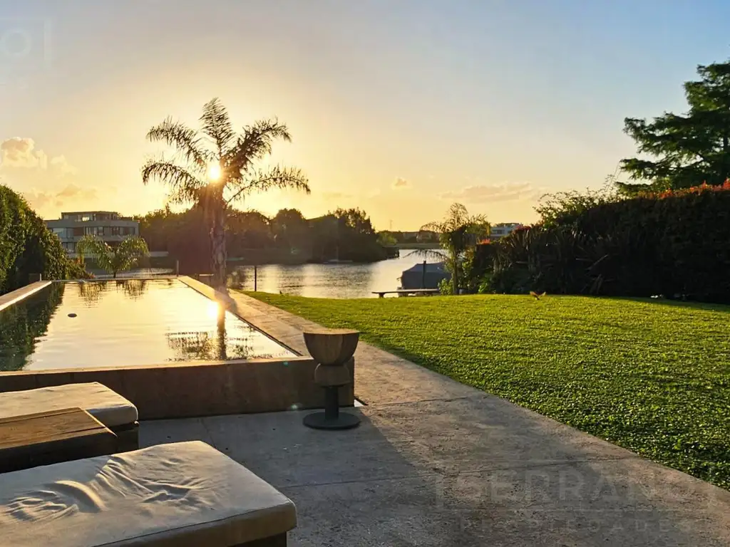 En el exterior, la propiedad ofrece una experiencia privilegiada: pileta climatizada con desborde infinito, áreas verdes integradas al entorno y muelle propio, ideal para disfrutar del río y la naturaleza.