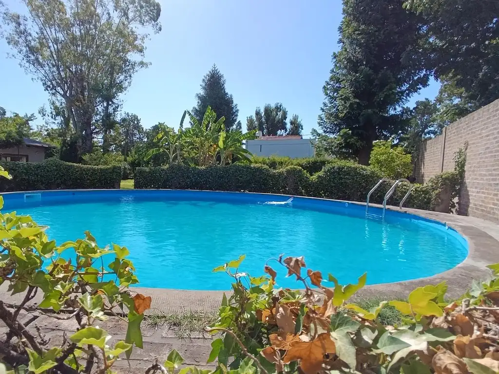 Amplio jardín, lavadero y espacio de guardado, pileta redonda de 8m de diámetro.