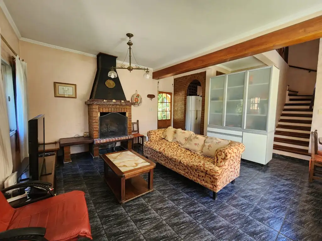 Amplio living con hogar a leña