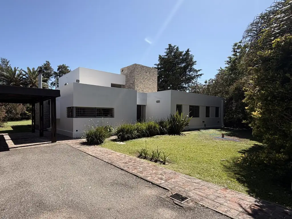 El terreno cuenta con 1.324 m2, totalmente parquizado y con una forestación consolidada que incluye palmeras al frente y cerco verde perimetral, aportando privacidad y una estética muy cuidada.