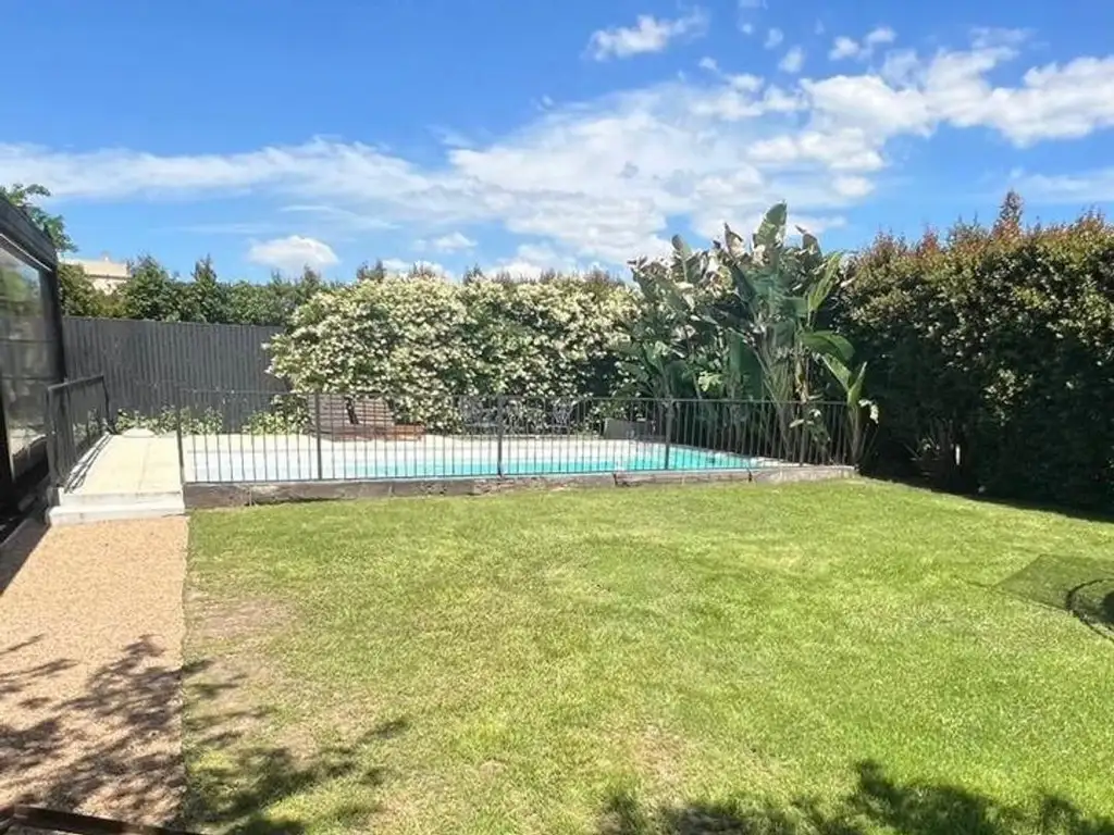 Ubicada en un lote interno con orientación privilegiada, esta casa combina amplitud, confort y detalles que invitan a disfrutarla en cada rincón. En la planta alta se distribuyen tres suites luminosas con vestidor y un hall que otorga independencia a cada ambiente. En la planta baja se despliega un living-comedor con grandes ventanales al verde, un playroom versátil, cocina moderna con comedor diario, y un lavadero completo con equipamiento. La galería con parrilla y chimenea se convierte en un espacio ideal para encuentros, mientras que la pileta con reja de seguridad se integra al entorno arbolado del jardín.