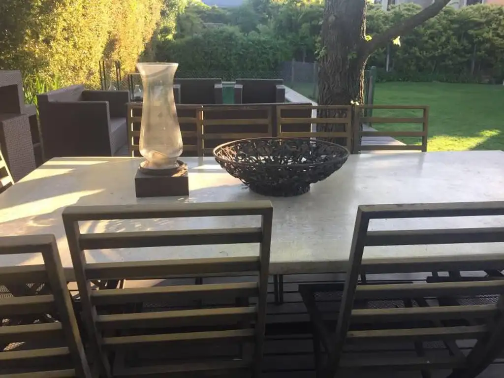 La casa es prácticamente nueva, cuenta con 6 dormitorios, varios en suite o semisuite. En Planta Baja se encuentra la cocina con gran comedor diario, lavadero, toilette, gran living, estar, comedor principal. Galerías, con parrilla, deck con amplia mesa y living, pileta, riego. Segunda planta con suite principal, otros 3 dormitorios con 2 baños. Tercera planta con gran play, 2 dormitorios con 2 baños.