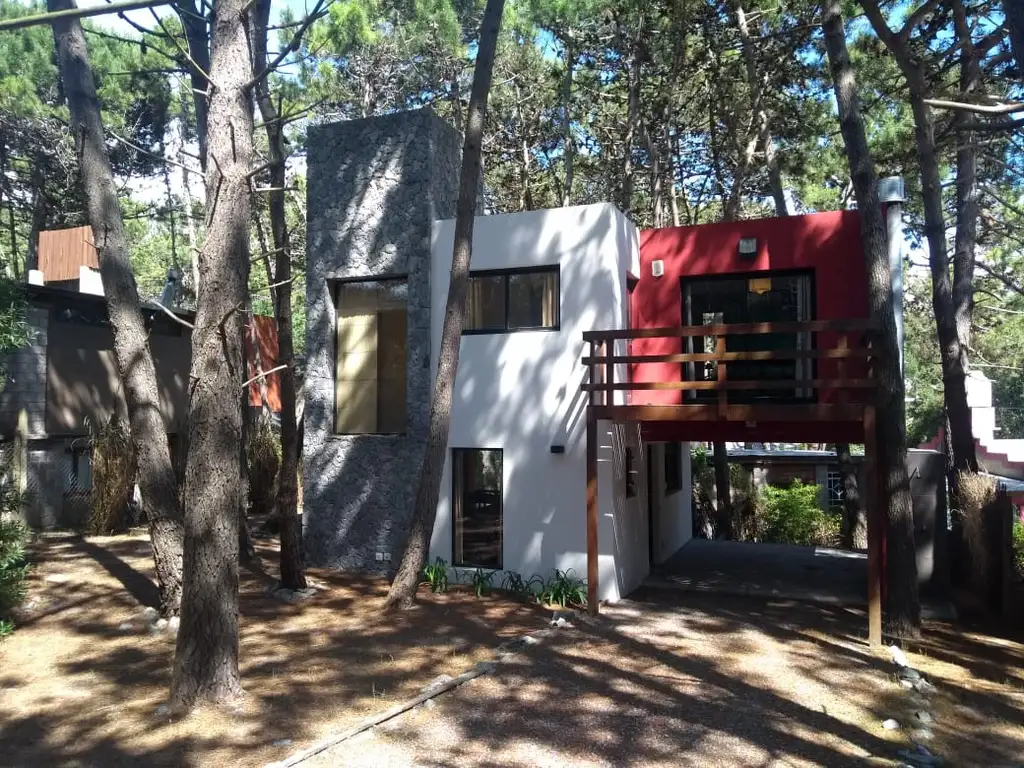 Planta Baja: Líving comedor con hogar a leña y aire acondicionado F/C, , cocina integrada con barra desayunadora. Toillete. Baulera.