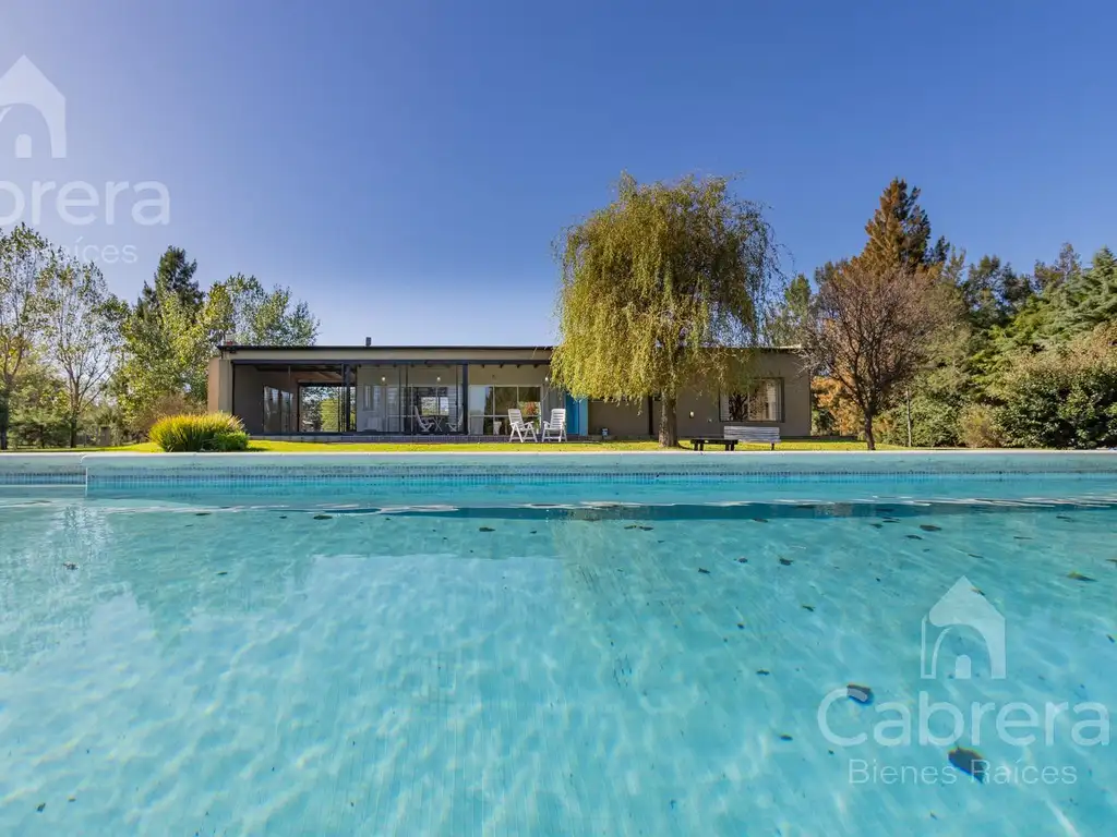 El lote está completamente cercado con alambre olímpico y cuenta con un portón de entrada automático. La seguridad se refuerza con cámaras instaladas alrededor de la casa. Más de 100 árboles plantados embellecen el entorno, y el sistema de riego por aspersión, alimentado por una bomba de agua al acuífero Puelche, garantiza el mantenimiento del jardín.