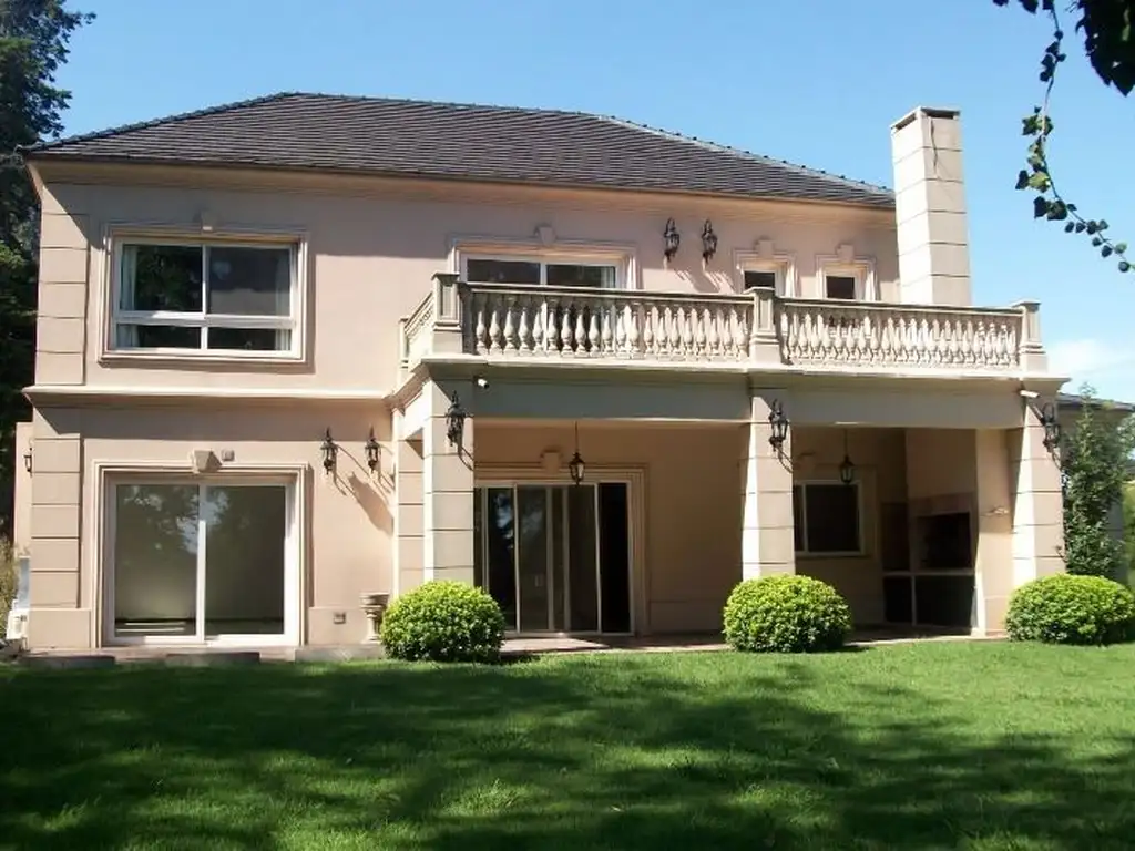 Planta baja: hall de recepción en doble altura, living-comedor con hogar, cocina comedor diario con muebles completos y salida a la galería con parrilla. Toilette, escritorio, habitación de servicio con baño, lavadero con entrada independiente, garaje semicubierto para dos autos.