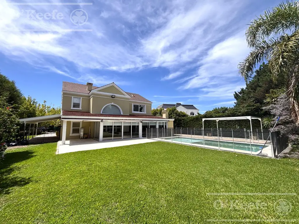 Planta Baja: Al ingresar, nos recibe un amplio hall de entrada que da paso al living-comedor. La planta cuenta con un escritorio, toilette de recepción y un estar de TV. La cocina, integrada a un quincho cerrado con vistas al parque, se destaca por su amplitud y funcionalidad. También dispone de un lavadero, cochera cubierta con capacidad para varios vehículos y una dependencia de servicio con baño. Además, incluye un pequeño altillo ideal como sala de juegos.