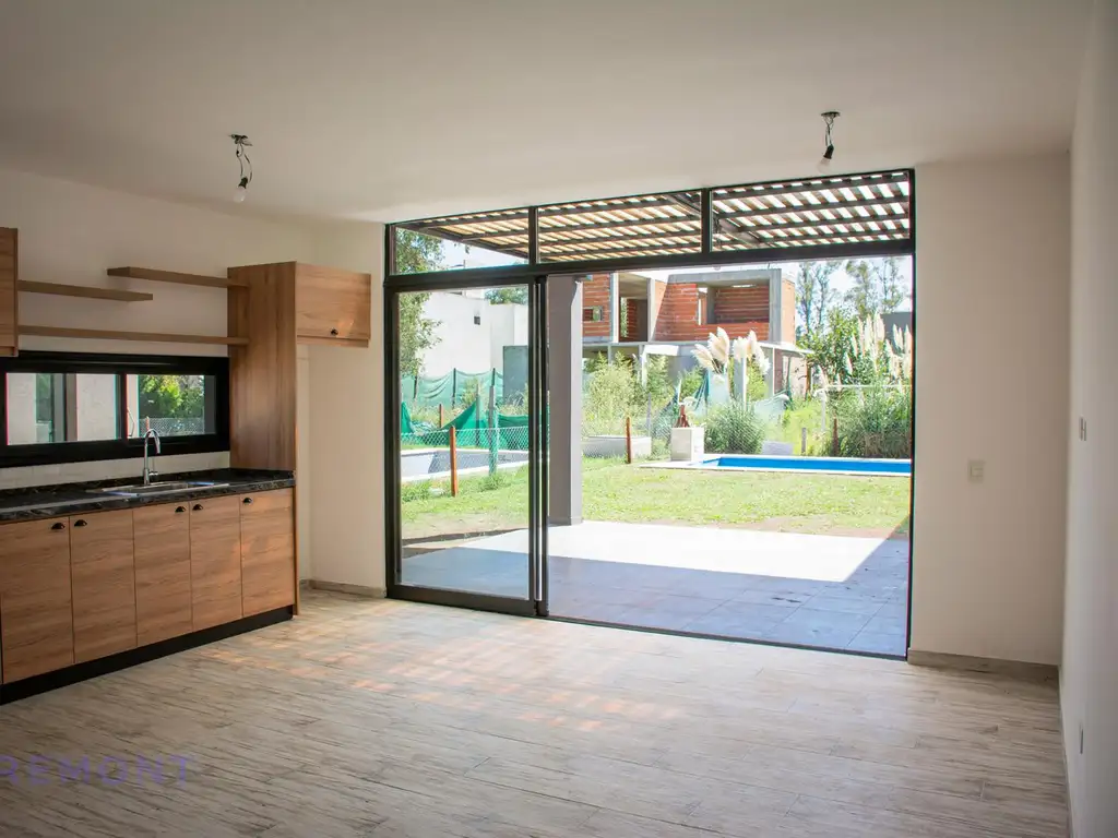 En el Barrio Alvarez del Bosque - un barrio de gran arboleda y casi 100 casas habitadas - encontramos esta hermosa casa a estrenar desarrollada toda en Planta Baja.