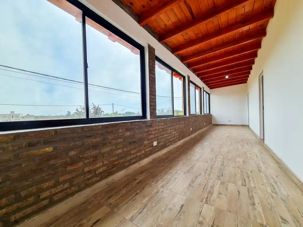 -Quincho 55m2 con piso de madera, baño completo y habitación de guardado.