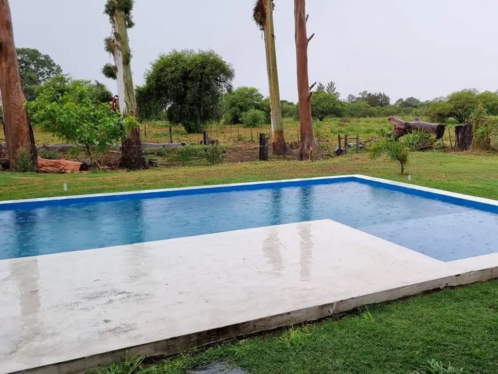 Es una casa casi nueva 2 años de construida todo impecable , cuenta con cocina comedor integrada,2 dormitorios ,baño, galeria, piscina grande y solariun la misma fue construida con materiales de excelente calidad.- el terreno completo es de 736 mts . a 150mts de la ruta 1 bajando al oeste por la calle 86 se encuentra dicha propiedad