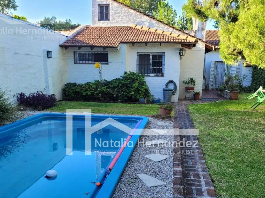 El inmueble se dispone de la siguiente forma: reja perimetral con portón de acceso vehicular corredizo (se puede hacer automatizar), amplio jardín al frente, cochera con capacidad para 3 o 4 vehículos (semicubierta para dos), puerta de acceso al inmueble blindada, amplio living comedor con pisos cerámicos, techos de madera a la vista, estufa tiro balanceado, split frio-calor de 6000 frig/cal; cocina comedor con amoblamientos, horno, anafe a gas de 4 hornallas, pisos cerámicos, arcada hacia el liiving, lo cual hace que los ambientes sean muy luminosos; pasillo distribuidos; tres dormitorios (dos con pisos cerámicos, el principal con pisos parquet; dos baños, uno con ducha y otro completo; en planta alta pequeño playrom o escritorio; lavadero; patio; amplio fondo libre con pileta de fibra; amplio quincho con parrilla y baño.