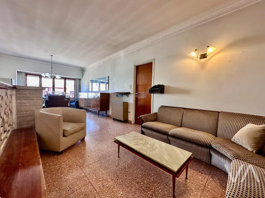 En planta alta, por escalera, amplio living comedor a la calle, cocina con comedor diario, lavadero separado, patio y quincho con parrilla y baño. Area privada con dos dormitorios con placard y un baño completo con ventilación natural. Superficie de 130 m2.