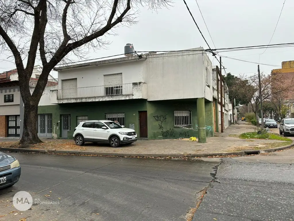 Actualmente, la propiedad cuenta con un galpón con ingreso por calle Saavedra y una vivienda desarrollada en dos plantas sobre Sarmiento. En planta baja se encuentra una cocina comedor; en la planta alta, dos dormitorios, un espacio comodín ideal como escritorio o estar, y un patio que aporta excelente luminosidad.