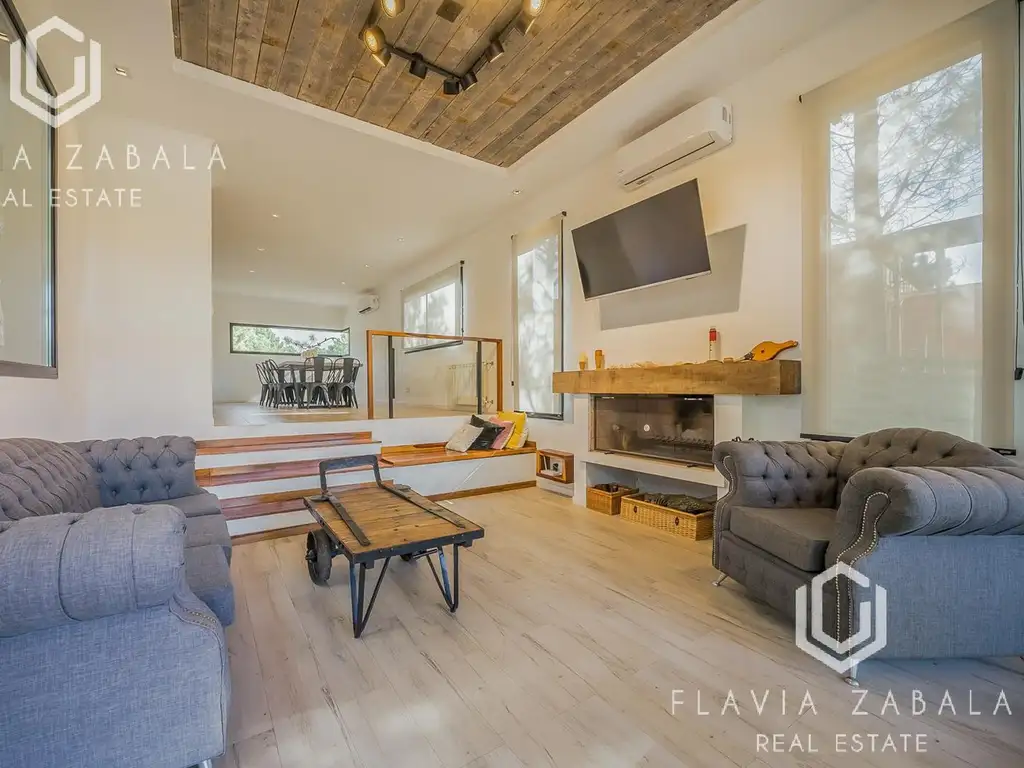 - Living con hogar a leña en desnivel con vista al golf