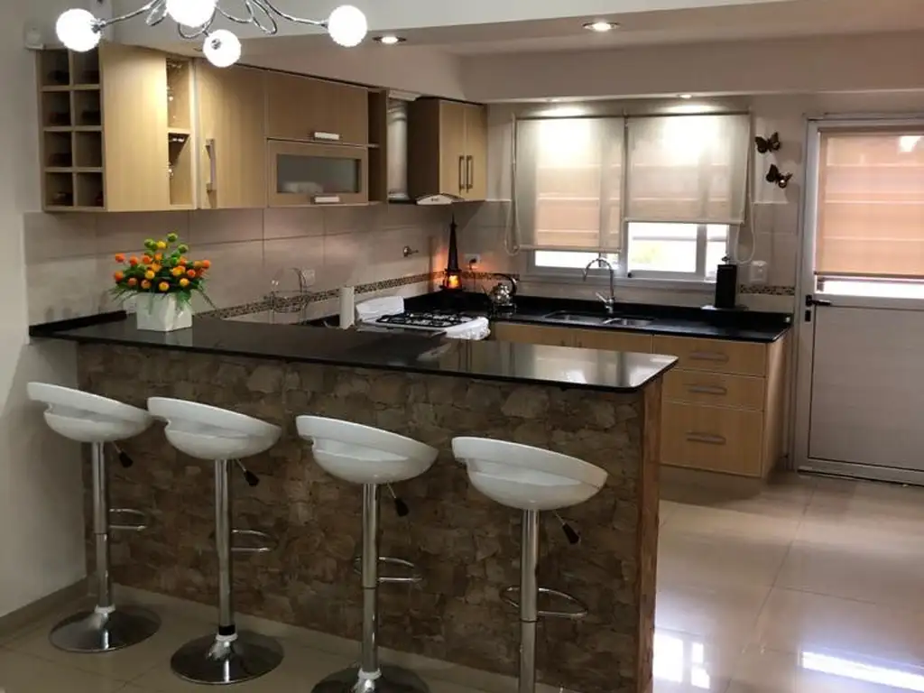 Gran quincho, con muebles bajos y alacenas en melamina blanca de primera calidad , cocina industrial, baño toilette, terraza con parrilla (30 m2 cubiertos y 25 m2 descubiertos) excelente calidad , productos de primeras marcas, porcelanato en todos los ambientes , terminaciones en revear. No deje de visitarlo!