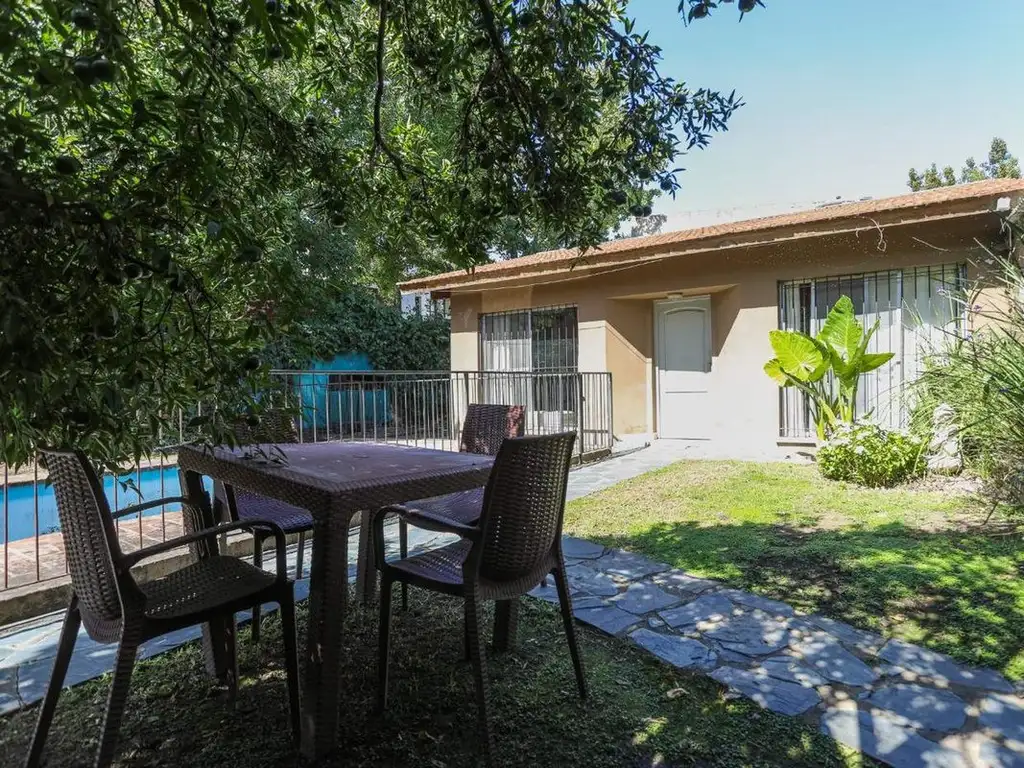 La casa posee jardín con pileta (sin filtro), ideal para disfrutar del aire libre en un entorno tranquilo y residencial.