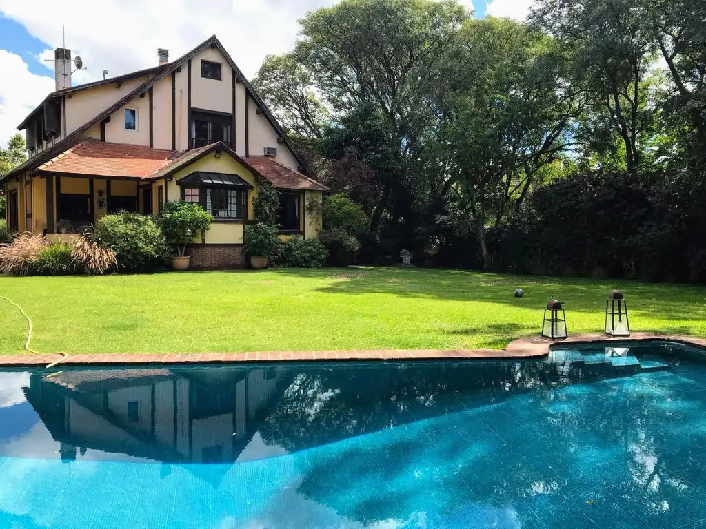 Piscina rodeada por un arbolado jardín, ideal para relajarse y disfrutar de actividades al aire libre. Gran galería y quincho con parrilla, perfecto para reuniones familiares o con amigos.