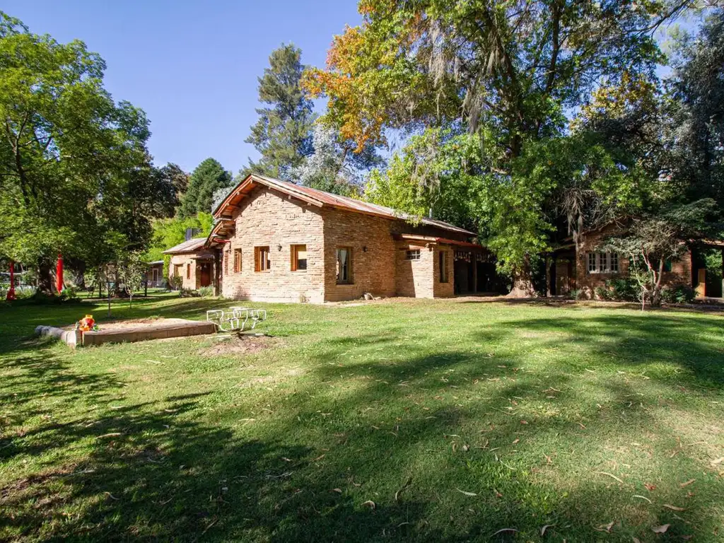 Tiene un amplio living comedor con techos en doble altura con vigas de madera a la vista y salida a una soñada galería tipo quincho con parrilla. La cocina es muy amplia, con espacio de comedor diario y mucho mueble sobre y bajo mesada. Baño con ducha que se utiliza para recepción. Dormitorio principal en suite, luego hay dos más que utilizan un baño completo. Tiene un estudio o atelier independiente de 20m2 aproximadamente con baño, ubicado en el frente del terreno. El parque es sensacional, con muy buena piscina. Al fondo hay una casa de 45m2 con cocina y baño.