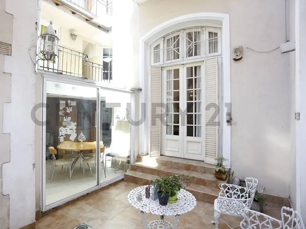 En la planta baja se encuentran dos ambientes grandes, divididos por una imponente escalera de madera los cuales se usan como living y comedor, con toilette de recepción. Además, separados se encuentra la cocina con comedor diario y salida al patio más un living de uso diario.