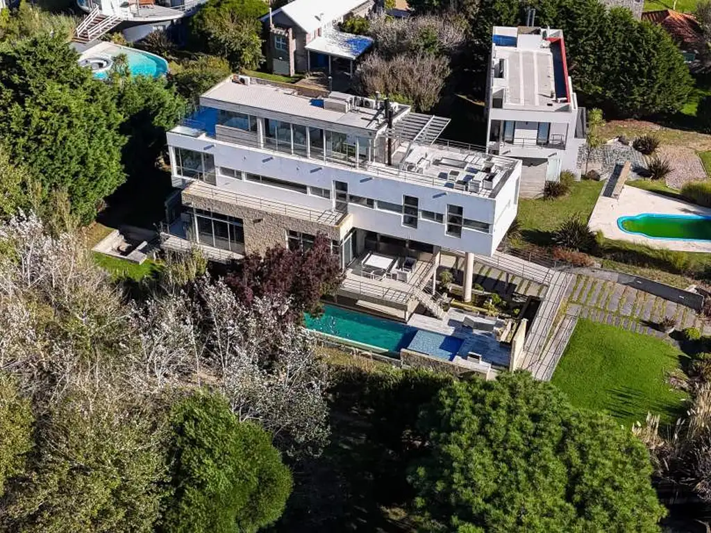 Manzana 83, Lote 20. Acceso principal y de servicio por rampa. Planta baja: playroom con mesa de pool y LCD, baño completo, lavadero, dependencia de servicio con baño. Ascensor a planta principal: living y comedor con salida al exterior, parrilla con acceso a piscina climatizada, terraza con asador y horno de barro, cocina con barra, baño de recepción. 2° piso: suite principal (cama de 1.60m, baño completo con duchador y ducha escocesa), suite (cama de 1.60m, baño con hidromasaje), dos dormitorios (2 camas simples c/u, baño compartido),. 3° piso: spa con hidromasaje (vista al mar), sauna, ducha escocesa, toilette, terraza con vista al bosque y parcial al mar. Equipamiento completo (incluye electrodomésticos, lavarropas, secarropa, LCDs, cámaras de seguridad). Precio publicado libre de gastos para el vendedor.