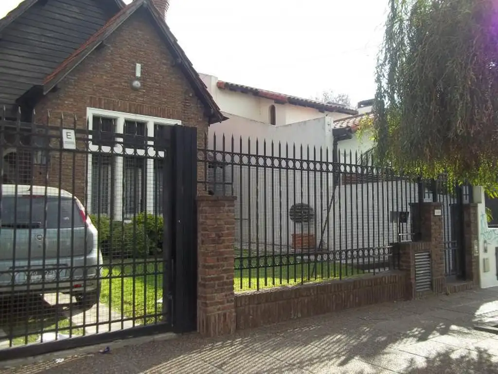jardin con entrada para dos autos, amplia recepcion, comedor diario, living con hogar, todo con pisos en madera, toillete, 3 dormitorios con placard, baño con bañera amplia cocina comedor,