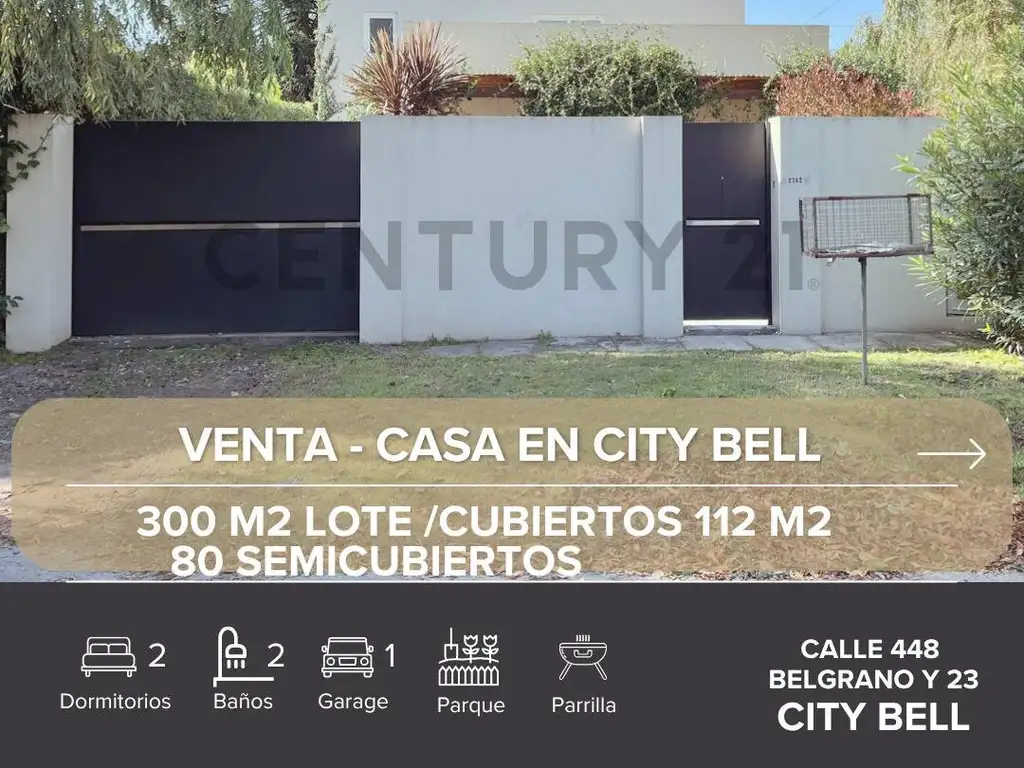 Casa en venta en City Bell, ubicada a pocos metros del Camino Belgrano, en un entorno rodeado de verde y tranquilidad. Esta casa cuenta con dos cómodos dormitorios que invitan al descanso, una cocina moderna y funcional, y un amplio espacio de living y comedor integrados. Cada ambiente ha sido diseñado pensando en la comodidad y la luminosidad, con aberturas de PVC que aseguran un excelente aislamiento térmico y acústico, permitiendo una conexión armoniosa con el exterior. Los detalles de calidad se hacen presentes en cada rincón, desde los materiales seleccionados hasta la distribución de los espacios, generando un hogar cálido, moderno y acogedor. El parque que rodea la propiedad ofrece un espacio verde para el relax o la recreación. Una oportunidad única para vivir en contacto con la naturaleza sin alejarse de los principales accesos y servicios de la zona.