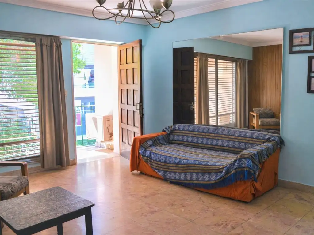 Al frente del lote se desarrolla la casa principal de dos plantas. Al ingresar, se accede a un amplio living con chimenea, que aporta calidez y carácter al ambiente. Desde allí se conecta con la cocina-comedor, funcional y bien distribuida, y con el sector de lavadero. En la planta alta se encuentran dos dormitorios de cómodas dimensiones y un baño completo, además de un balcón interno que brinda ventilación y luz natural.