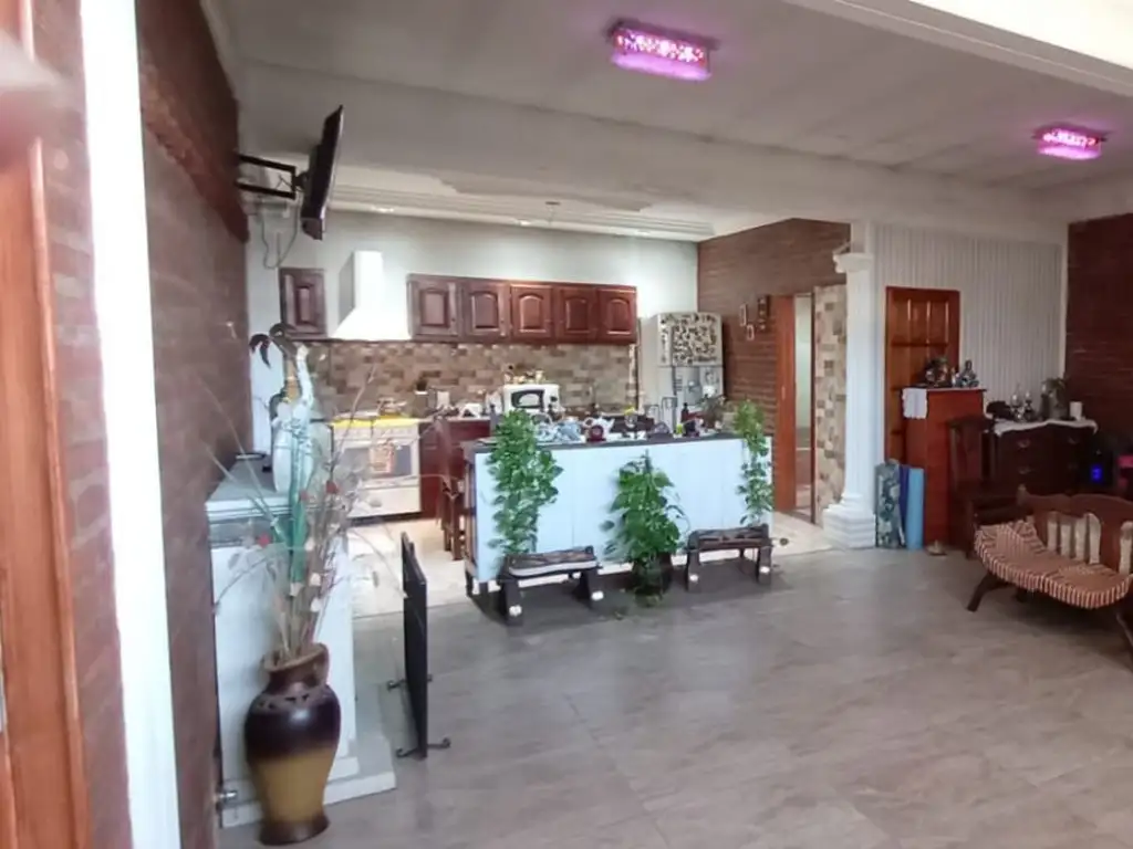 2 dormitorios - comedor - baño instalado - cocina comedor con mesada, bajo mesada, alacenas y extractor - lavadero - patio cubierto - termotanque - casa fondo: ambiente tipo loft (con entrada de vehiculo) instalado con mesada, bajo mesada, alacenas, extractor - baño instalado, antebaño con vanitory y bacha - termotanque - agua por bomba centrifuga. servicios: gas natural, luz, pavimento. Lote 11,10m por 21m menos ochava, superficie 205.50m2
