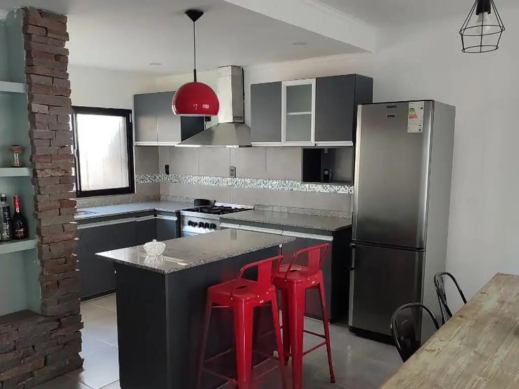Planta Baja: cocina en L -comedor separada con una barra, Lavadero con salida al patio chico trasero seco. Living, baño completo. Jardín delantero . Planta Alta: 3 Habitaciones con placares, cortinas black out, aires acondicionados. Un baño con antebaño y bañera.