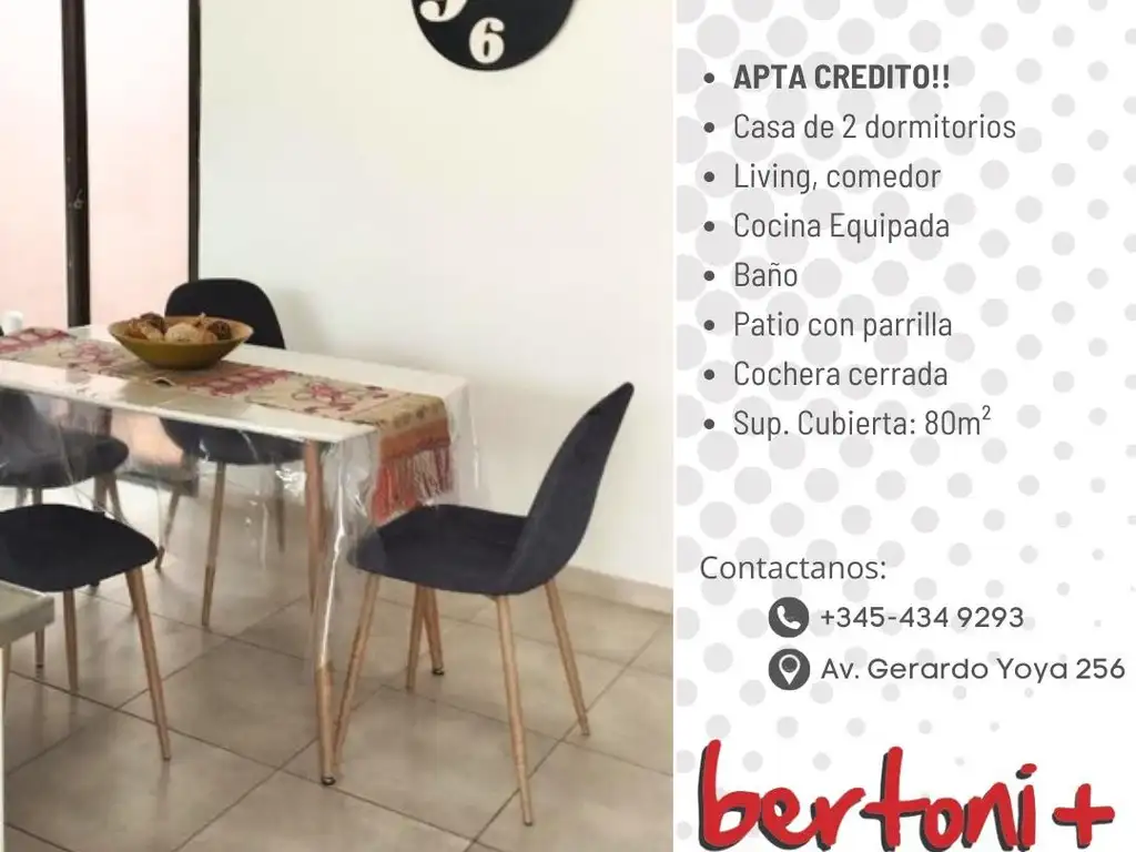 CASA 2 DORMITORIOS, LUMINOSA, CENTRICA, APTA CREDITO