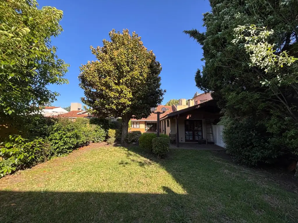 Cómodo quincho con parrilla y un parque amplio con espacio suficiente para instalar una pileta sin perder superficie verde.