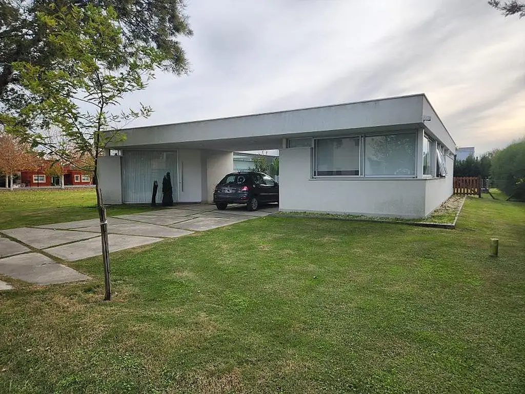 Moderna casa de 3 ambientes en Haras del Sur II. DESARROLLADA TODA EN UNA PLANTA: Hall de entrada. Living- Comedor y Cocina en concepto abierto, con grandes ventanales con vista a jardín central y salida a la galería. Toilette. Dormitorio principal en suite con vestidor. Segundo Dormitorio. Segundo Baño completo. EXTERIOR: Cochera semicubierta. Galería semicubierta con parrilla. Jardín con piscina.La casa cuenta con 2 equipos de aire condicionado y calefacción por radiadores.