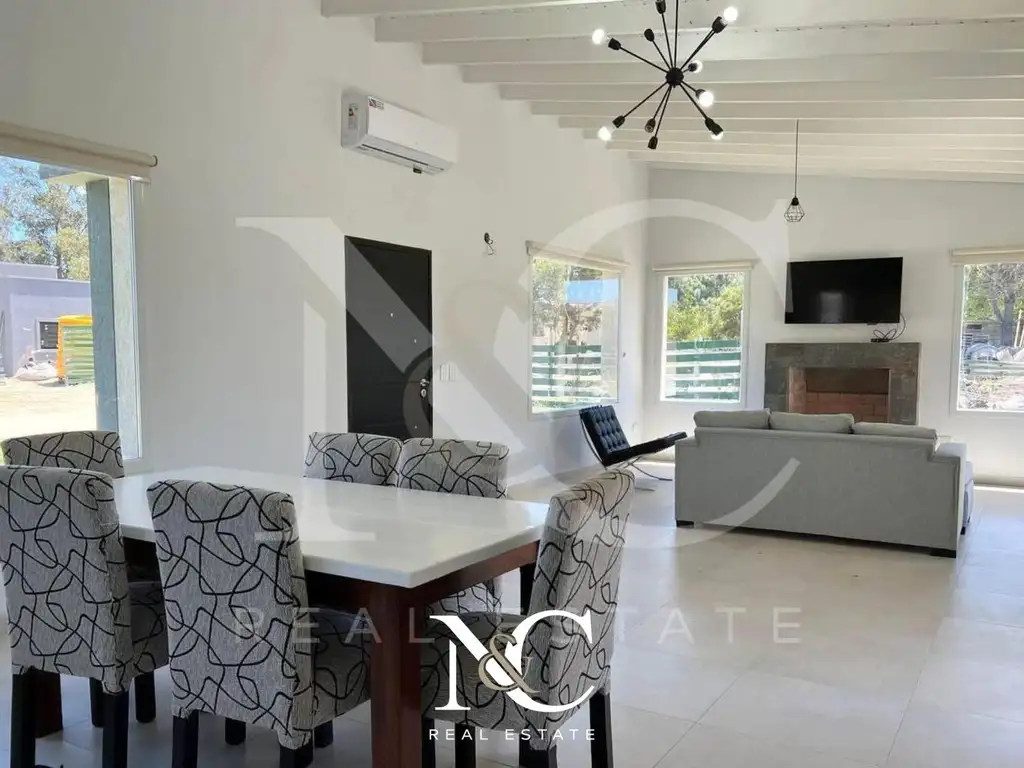 Al ingresar nos encontramos con un amplio y luminoso living comedor con hogar.