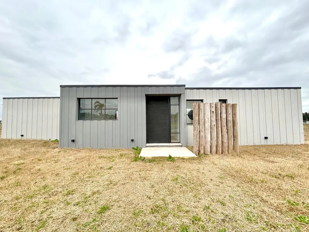 La casa, construida bajo el sistema modular por MODICA ARG, ofrece 3 dormitorios, 2 baños completos, espacios sociales amplios y luminosos, y una galería semicubierta ideal para disfrutar del aire libre durante todo el año.