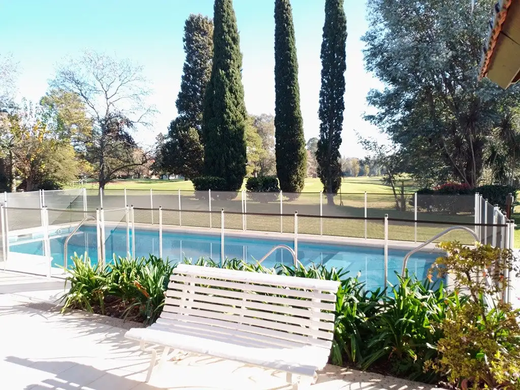 Comodidades: 5 dormitorios (3 en suite), 5 baños, estar escritorio, living, comedor principal, cocina con comedor diario, play room, lavadero, quincho cerrado integrado con parrilla, calefacción central por radiadores, pileta climatizada, galería, pérgola para autos, depósito exterior. TOTALMENTE AMOBLADA.