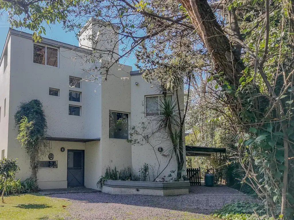 En planta baja cuenta con escritorio ideal para home office, toilette, living con chimenea en desnivel, comedor elevado, cocina separada, lavadero y dependencia con baño. En planta alta se encuentra la suite principal con balcón, vestidor y baño con hidromasaje, dos dormitorios (uno muy amplio) y un baño completo. Desde allí se accede a un tercer nivel con ambiente multiuso (hoy atelier) con salida a gran terraza con vistas abiertas.