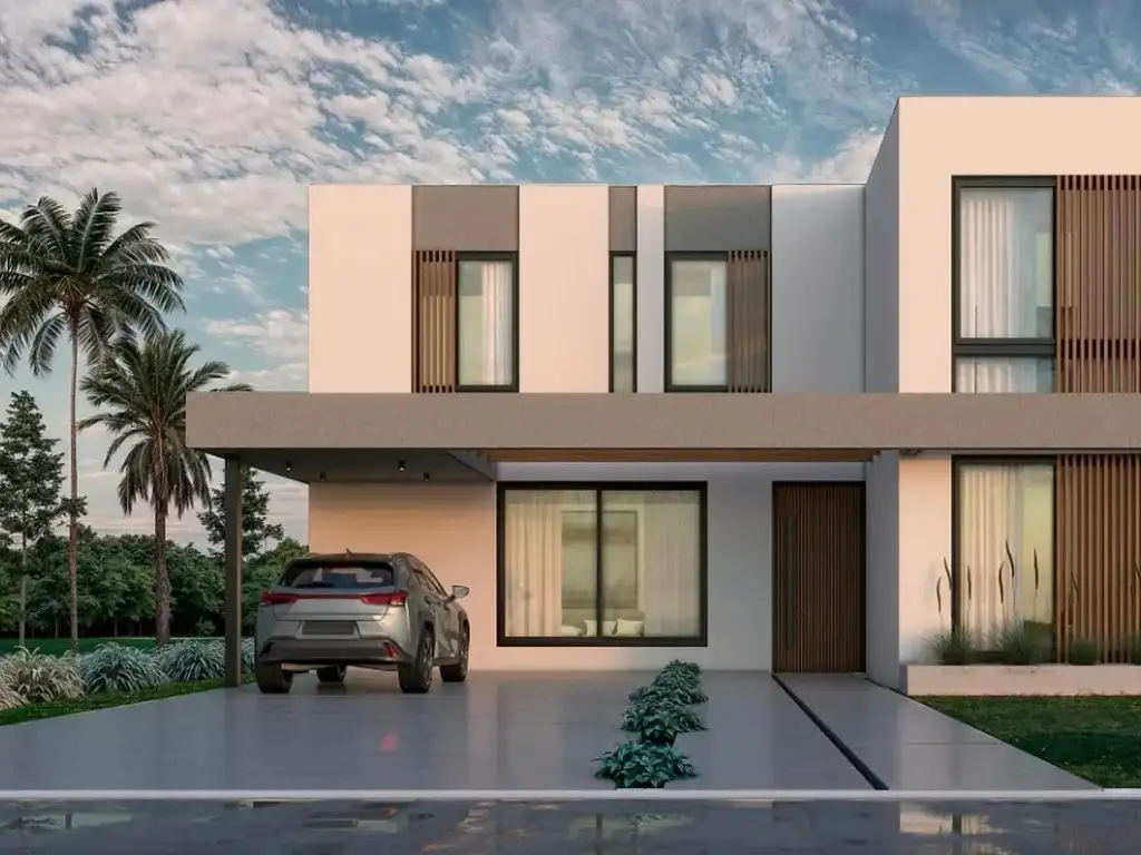 Casa desarrollada en dos plantas, en el lote 326 de barrio Golf, El Canton, implantada sobre un lote de aprox 840 mts2 y con aprox 240 mts2 cubiertos.