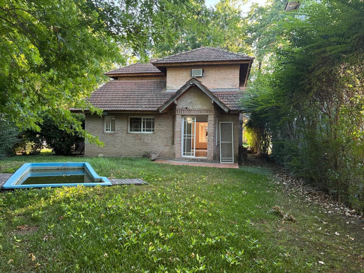 Al exterior se destaca un parque con pileta de fibra y cochera semicubierta para vehículos, que además funciona como galería con parrilla, generando un espacio ideal para reuniones y vida al aire libre.