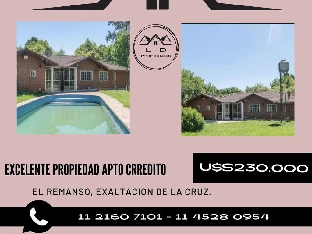 LDO. Venta Casa 4 amb Pileta Lote 2000m2. El Remanso. Exaltación de la Cruz